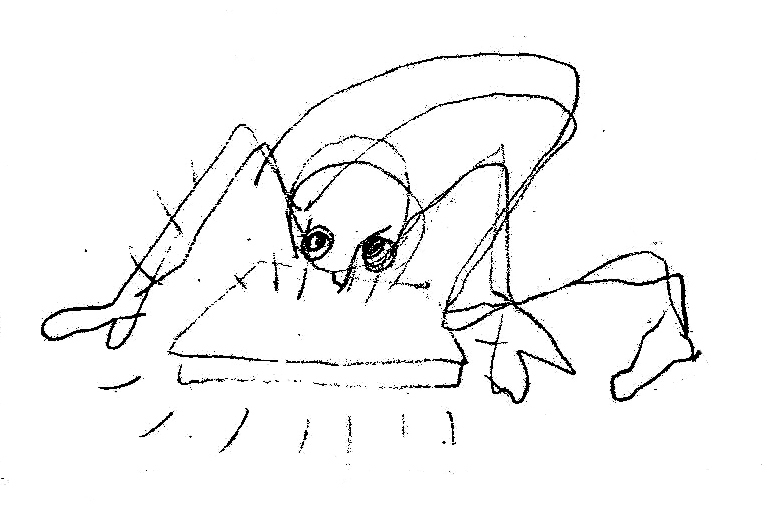 Gdy wpatruje się w wirującą spiralę – myśli o matematyce. Jest naznaczony niekończącą się ilością wcale nie wesołych informacji. Przesiąka wszystkim, co widzi i w czym uczestniczy, aż do pokrycia własnego ciała postawionymi na sztorc, czerwonymi kolcami, by nic go już dotknąć bezkarnie nie mogło. Do pozarastania pancerzem z nie do zagojenia raną lub twardą rdzą, na której powierzchni można zaledwie coś wydrapać.
